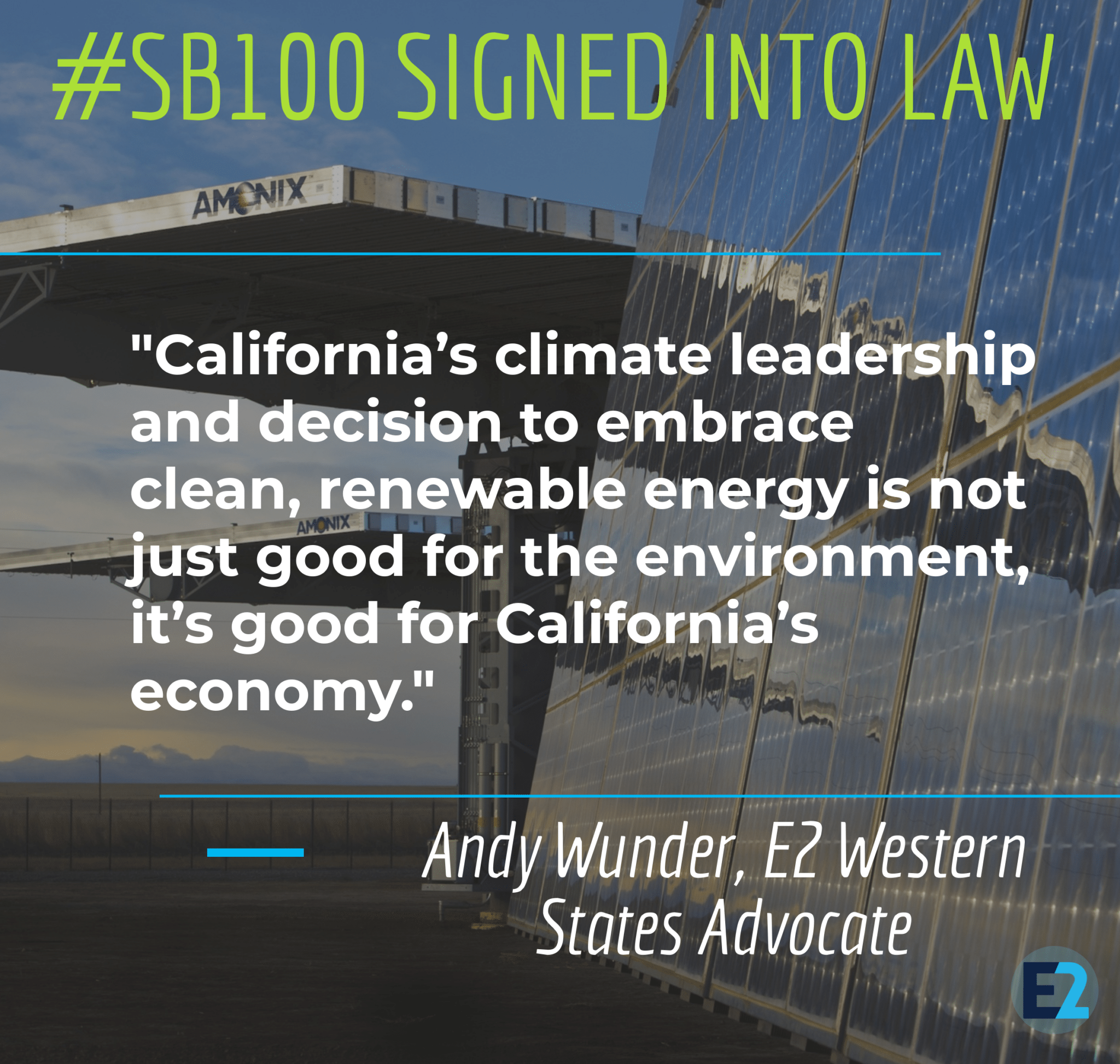 The following is a statement from Andy Wunder, Western States Advocate of E2 (Environmental Entrepreneurs):