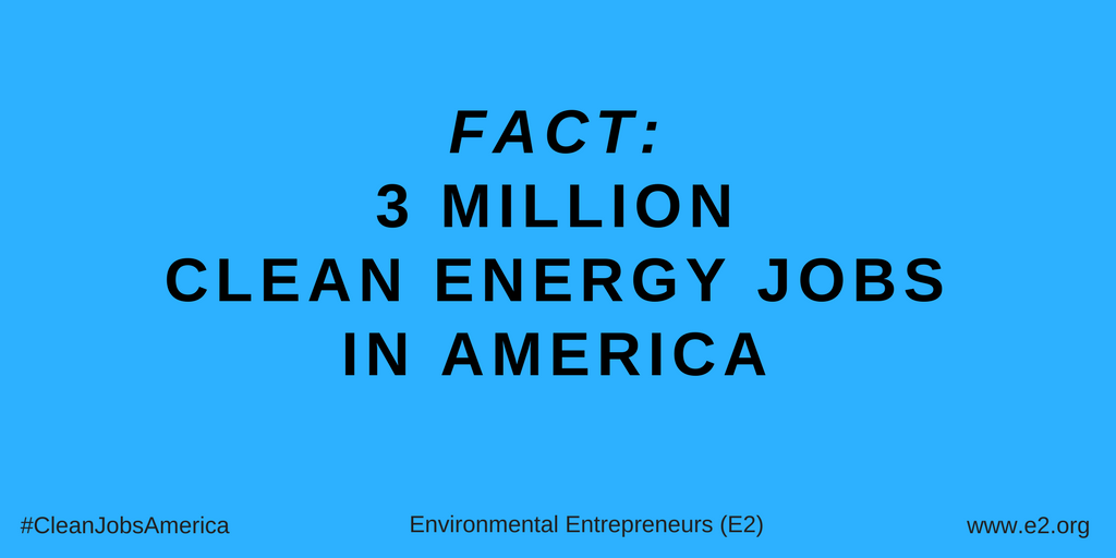 See here for an E2 fact sheet detailing the 3 million U.S. clean energy jobs. Also, social media graphics are available here, here and here.