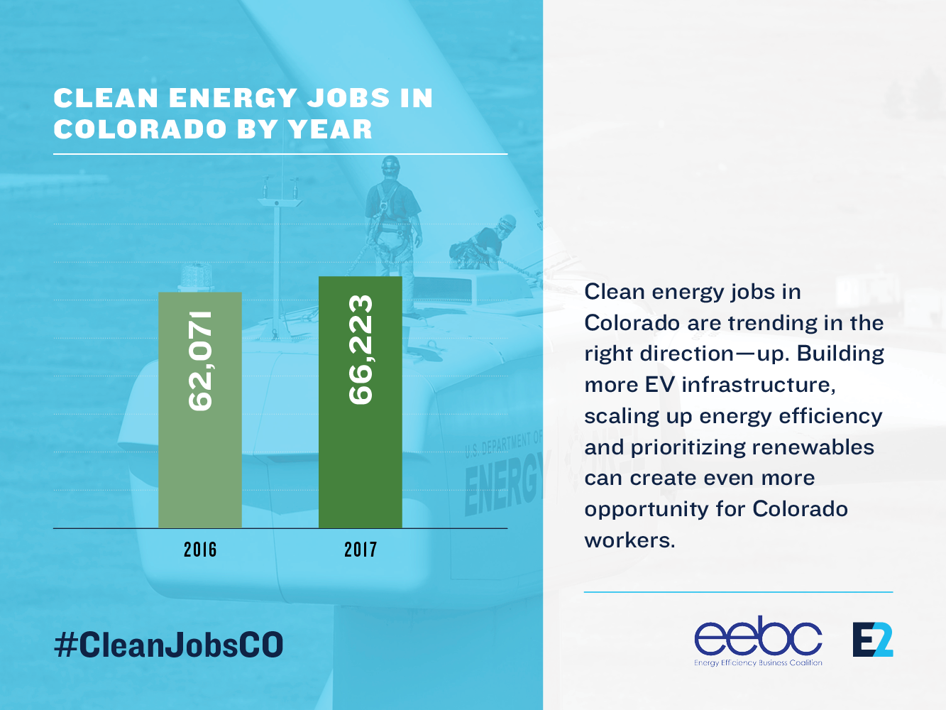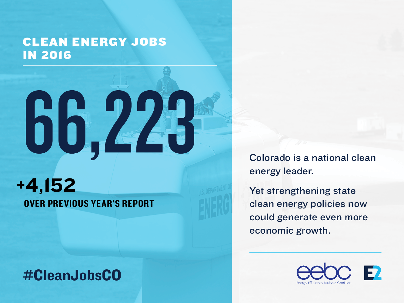 DENVER (September 22, 2017) – More than 66,000 people work in Colorado’s clean energy economy, according to the new Clean Jobs Colorado report unveiled today by the national, nonpartisan business group E2 (Environmental Entrepreneurs) and Golden-based Energy Efficiency Business Coalition.