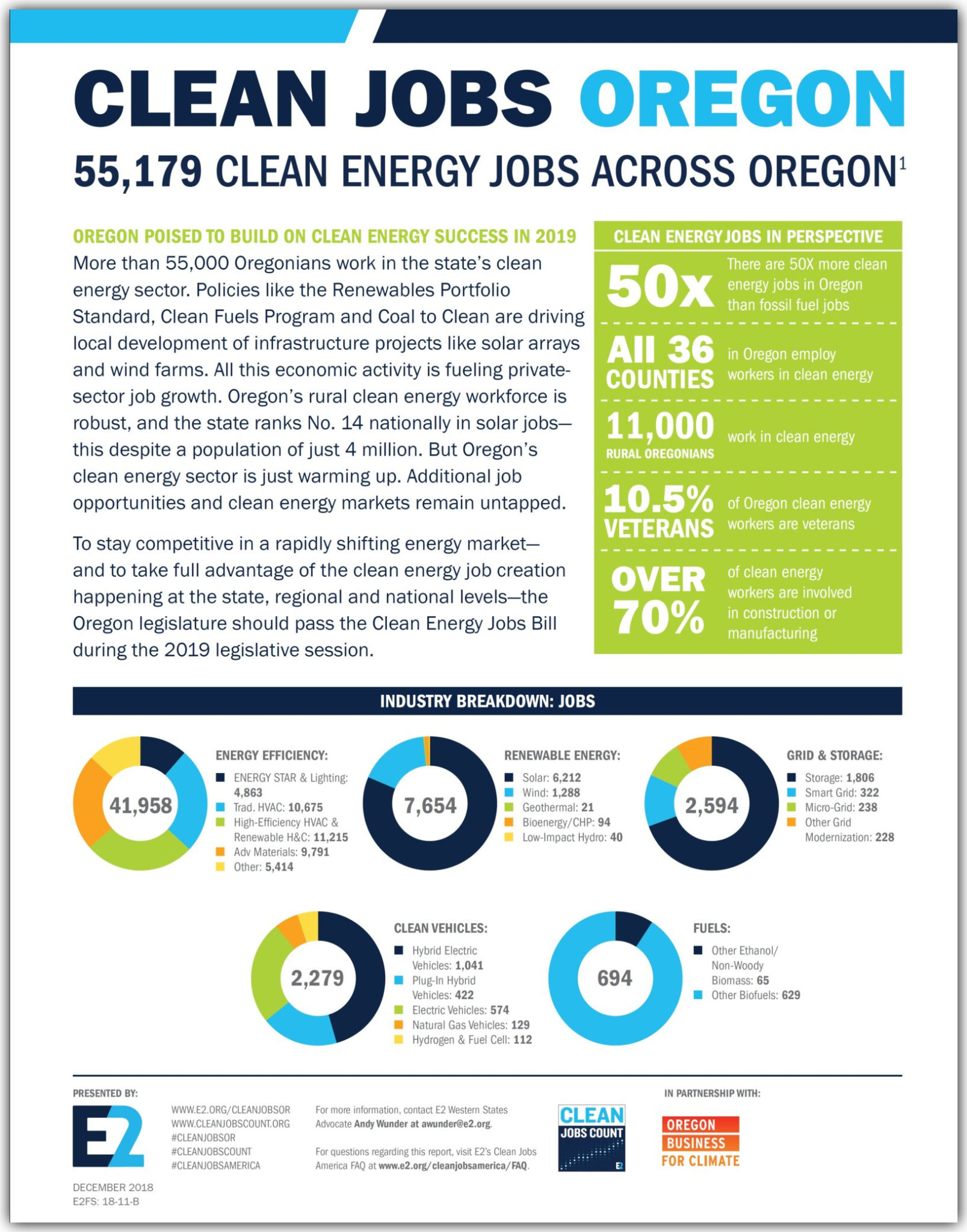 To stay competitive in a rapidly shifting energy market—and to take full advantage of the clean energy job creation happening at the state, regional and national levels—the Oregon legislature should pass the Clean Energy Jobs Bill during the 2019 legislative session.
