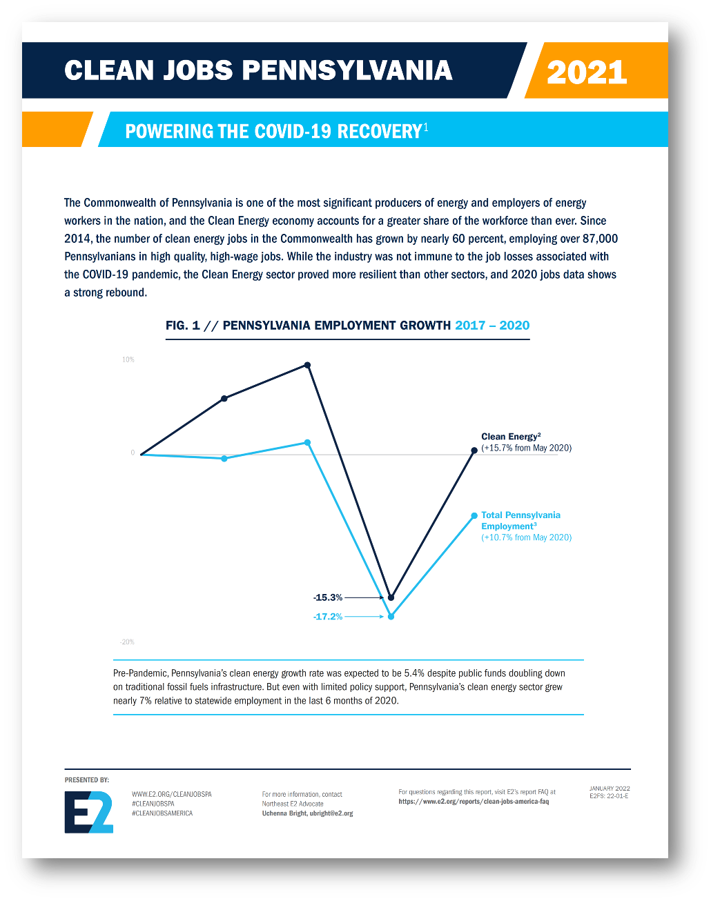 Clean Jobs Pennsylvania 2021 is the 6th clean energy jobs report for Pennsylvania from E2. Previous reports can be accessed in the below links.