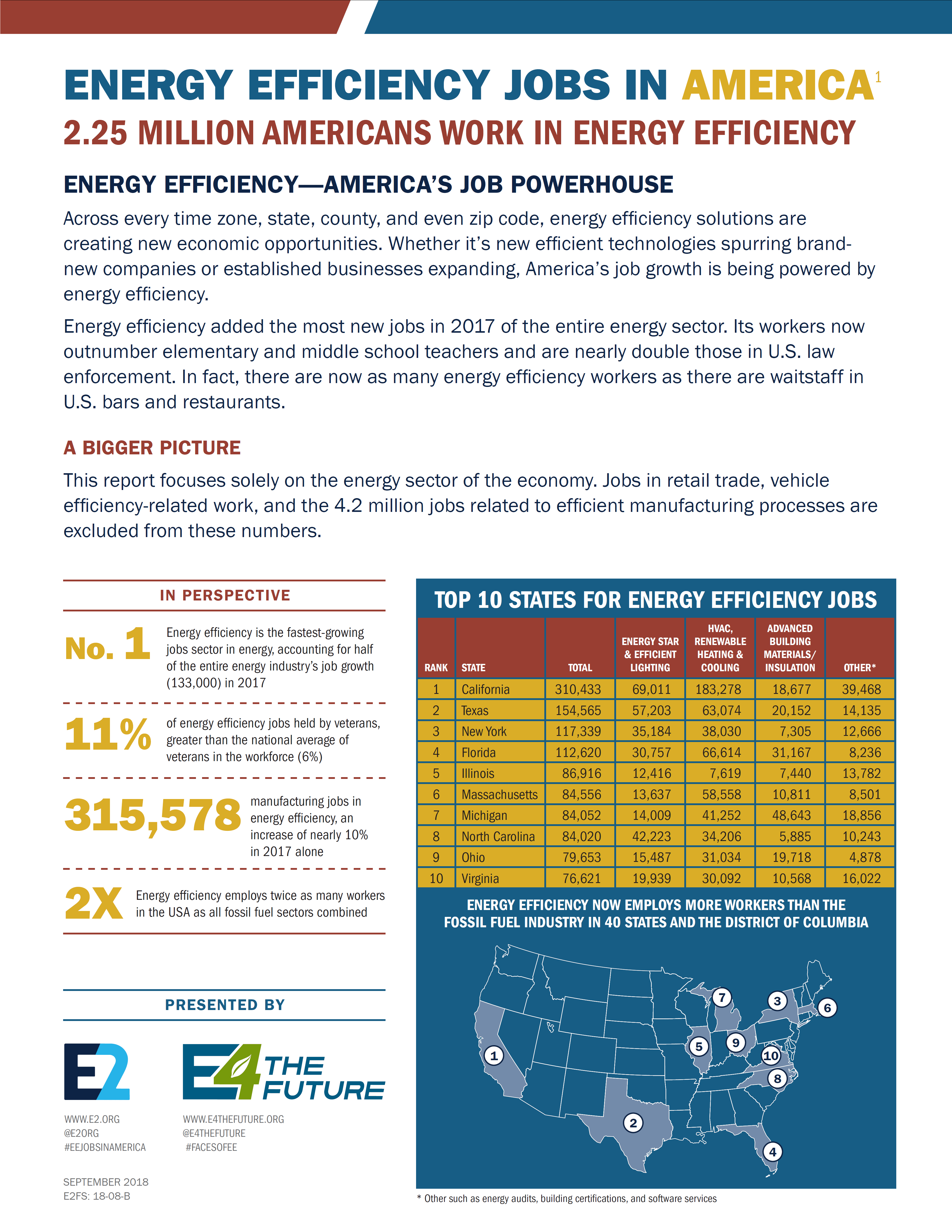 The full Energy Efficiency Jobs in America report is available directly at this link. Links to individual factsheets for all 50 states and the District of Columbia can be found below.